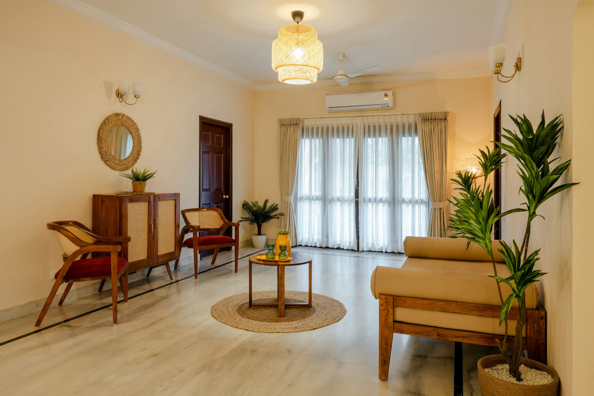 - Naturlige materialer som træ eller bambus tilfører varme og blødhed til et rum, der ellers domineres af hårde flader.